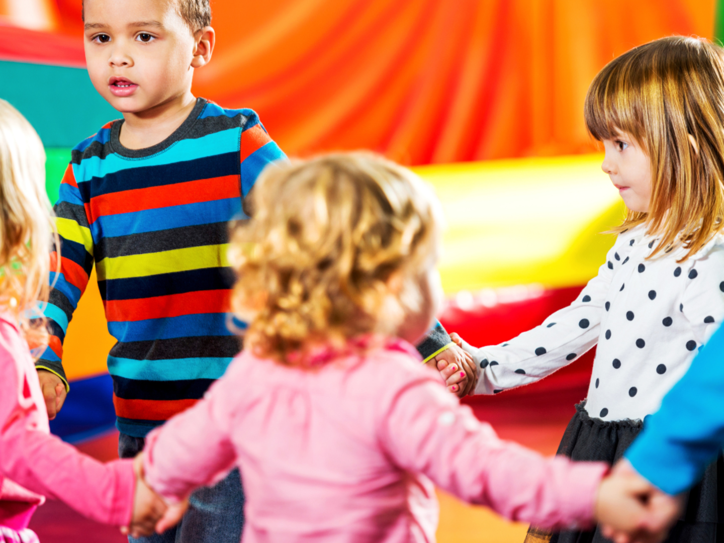 In unseren Kinderkursen ab 3 geht's kunterbunt zu. Auf spielerische Weise lernen die Kleinsten ein Gefühl für ihren Körper und die Musik kennen...
